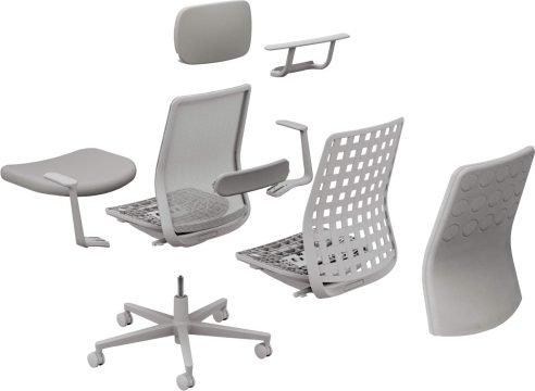 次にご紹介するのは、サステナブルなチェア2種類です。いずれも、背・座・脚・肘置き等を部品ごとに交換することができるロングライフ設計になっています。「イスの座にコーヒーのシミがついてしまった」「移動する際によく触れる背もたれの部分が色あせてきた」これらは、イスを買い替えるお客様の理由で特に多いものです。イスを1脚買い替えるよりも経済的なだけでなく、利用可能な部分は廃棄する必要が無いため環境にも優しいです。さらに、パーツごとに色を変えるなどの工夫により、デザイン性が高く愛着の持てるイスになります。