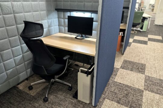 社内では、資料作成などの集中作業や思考の整理に没頭したいときに活用していますが、Web会議用ブースとして使うのもおすすめです。