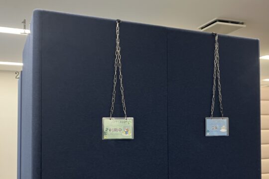 外側から利用状況が分からないため、ブースの使用はGoogleカレンダーでの予約制とし、ブースの外には「利用中」を示す札をかけるなど、運用面でも工夫をしています。