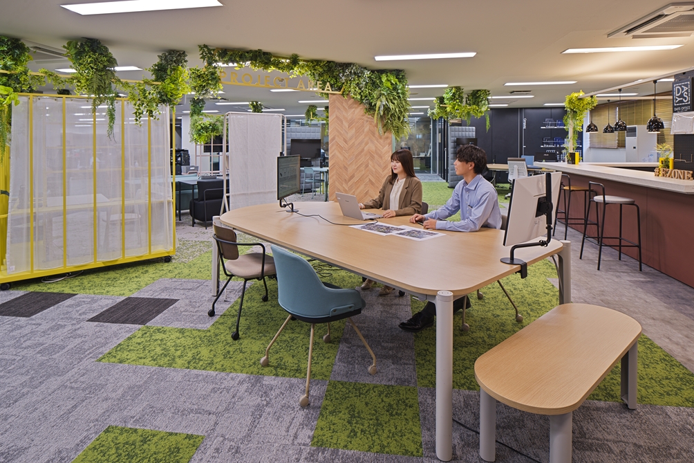 今回は、オフィスリニューアルで新たに導入したオフィス家具の中から、“集中とコミュニケーション”をテーマに、個々が集中できる環境を保ちながらも、自然と会話が生まれる家具をご紹介します。