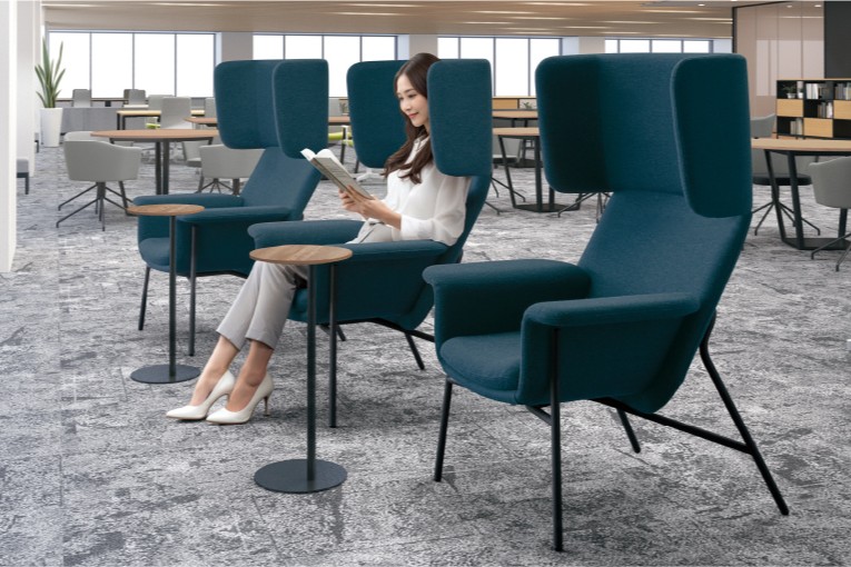 周囲の視線をほどよく遮ることで、オープンな空間の中でも落ち着いて作業や思考に集中できる環境をつくります。
