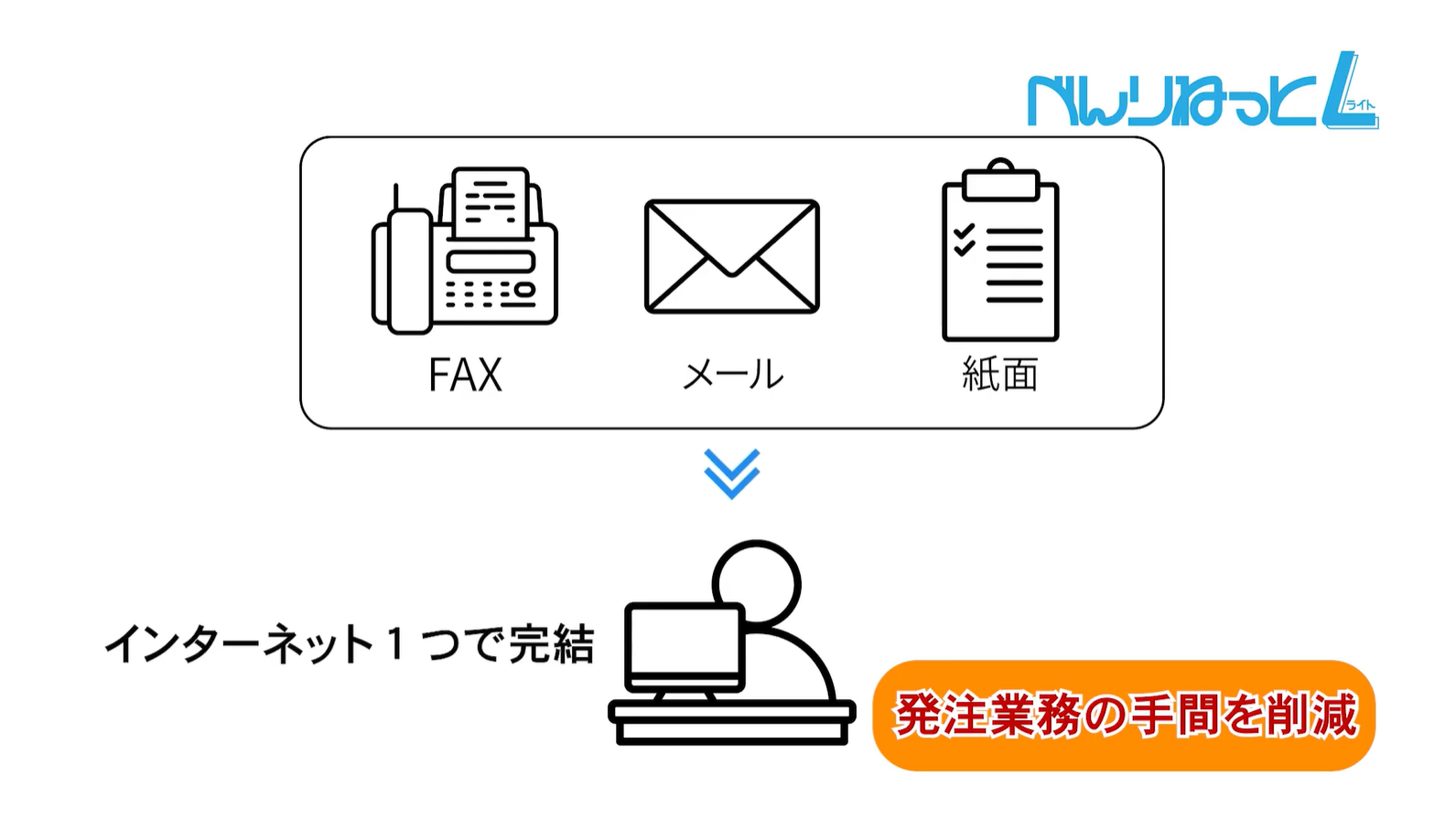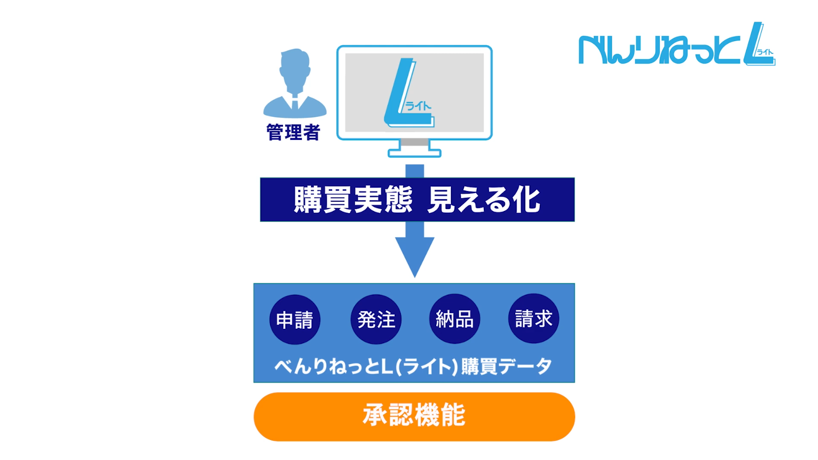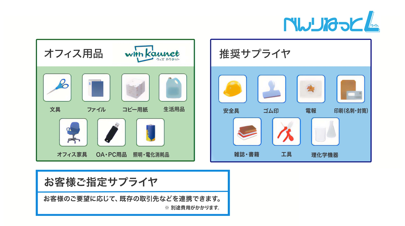 べんりねっとライトは、オフィス用品をはじめ、様々な商品・サービスが一元管理できる購買システムです。