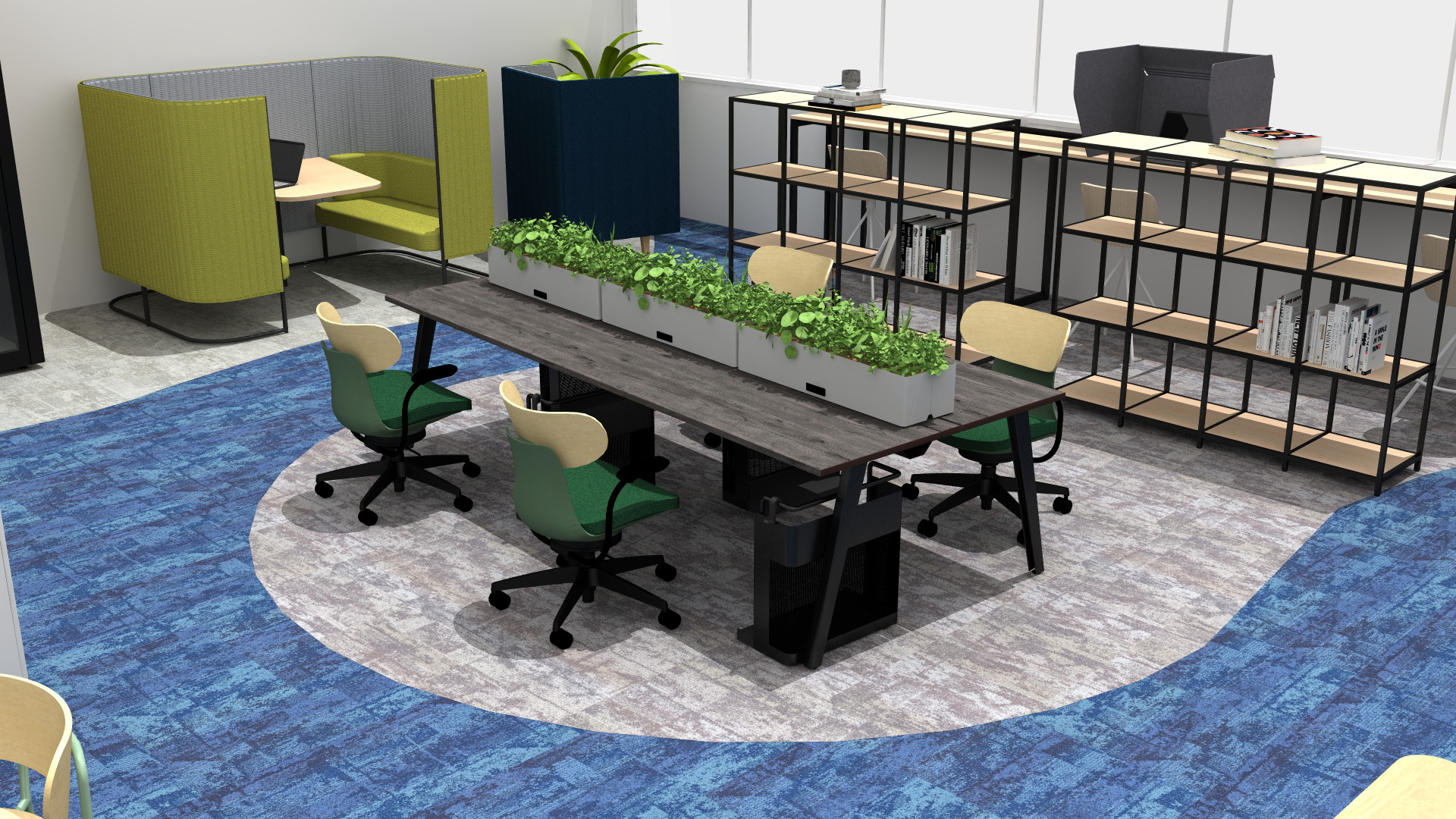 その日の気分や仕事内容に合わせて席を選べるオフィス。
