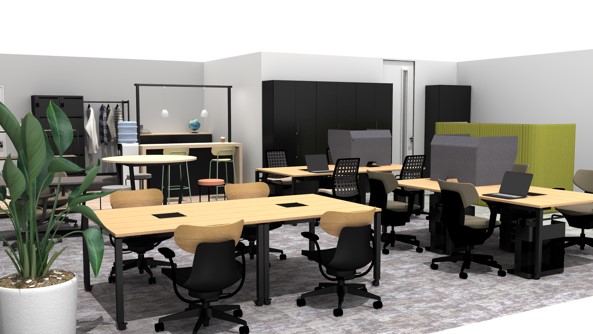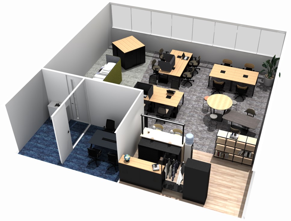 ① テーマに沿ったレイアウト案とエリアごとの特徴をご紹介!② オフィスのカラーや目的に合わせたオフィス家具のイメージがわかる!③ 座席数や面積などオフィスデータが見られる!