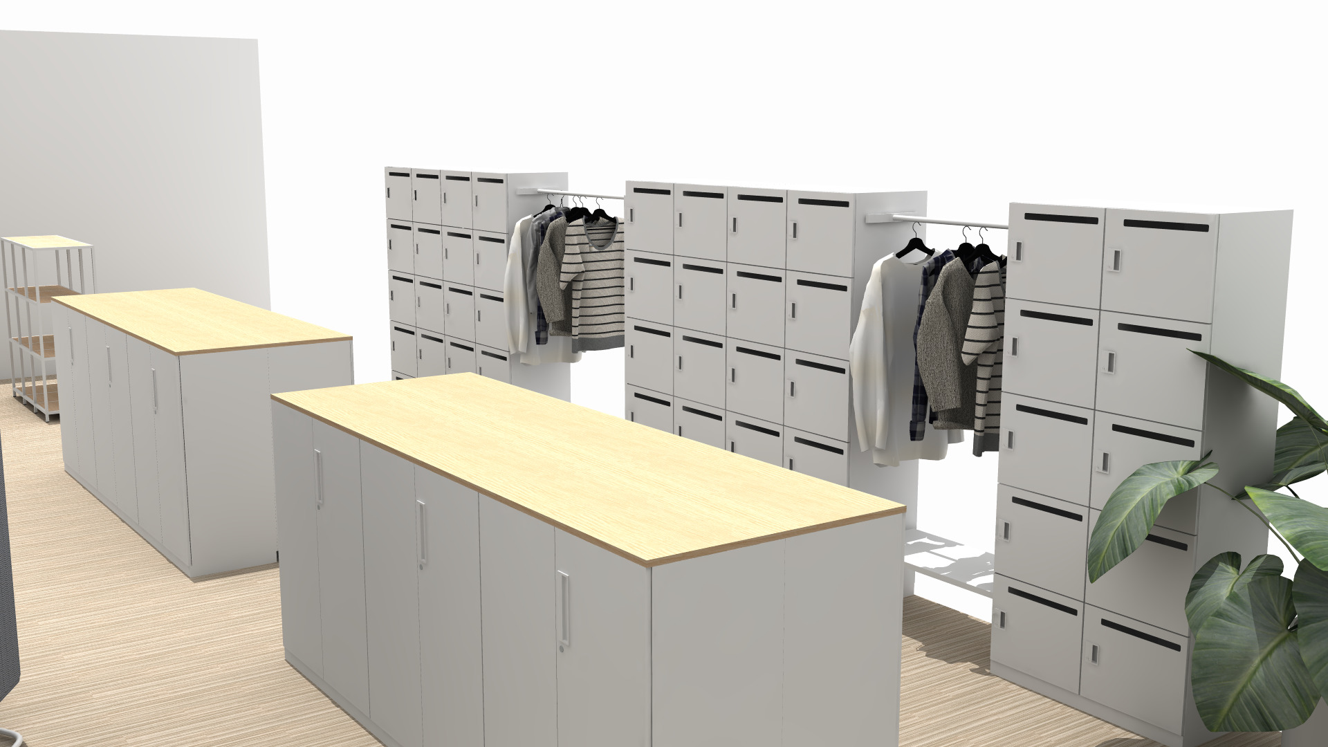 | オフィスの特徴 | 4人席・2人席のデスクのほか、集中できるソロブース、気軽に打合せのできるミーティングスペースなどを用意。社員それぞれのパソコンや書類は、壁面に配置した個人ロッカーに収納する。会議室はガラス間仕切りを採用し風通しの良い印象に。 |